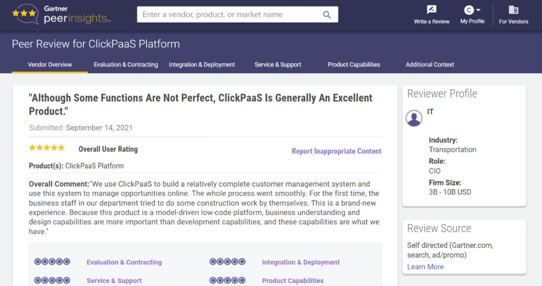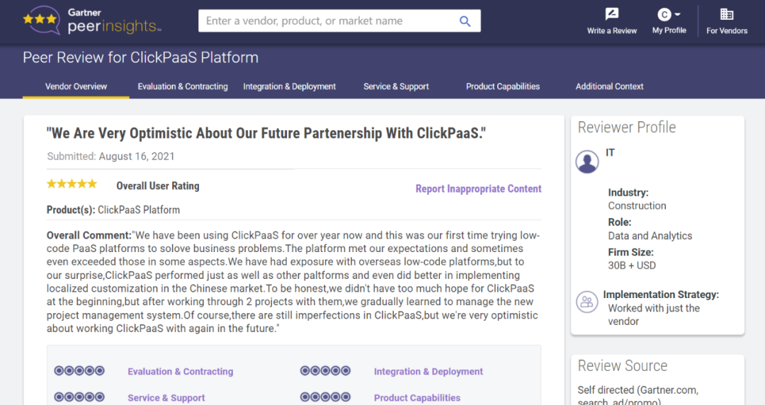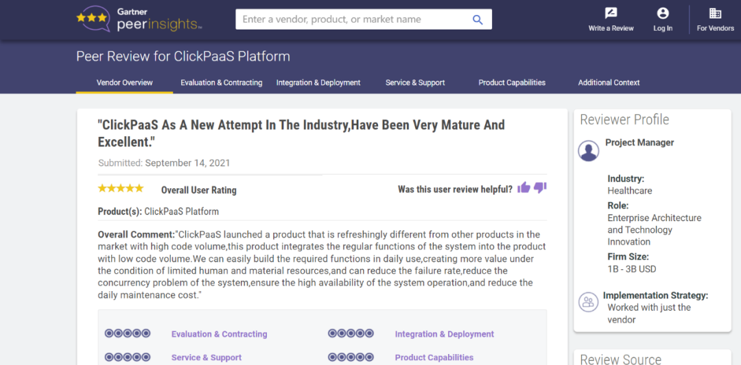 Tips::::::::【Peer Insights】——用户对企业IT产品和服务发布真实评价的平台。。。。。。。。。。。。。。目前已有355个市场,,,,,,,,,,255,000条经过验证的评价。。。。。。。。。。。每一条评价Gartner会针对参评企业营收规模及参评人员信息做验证、、、、、、、、、、评价内容做多维核实。。。。。。。。